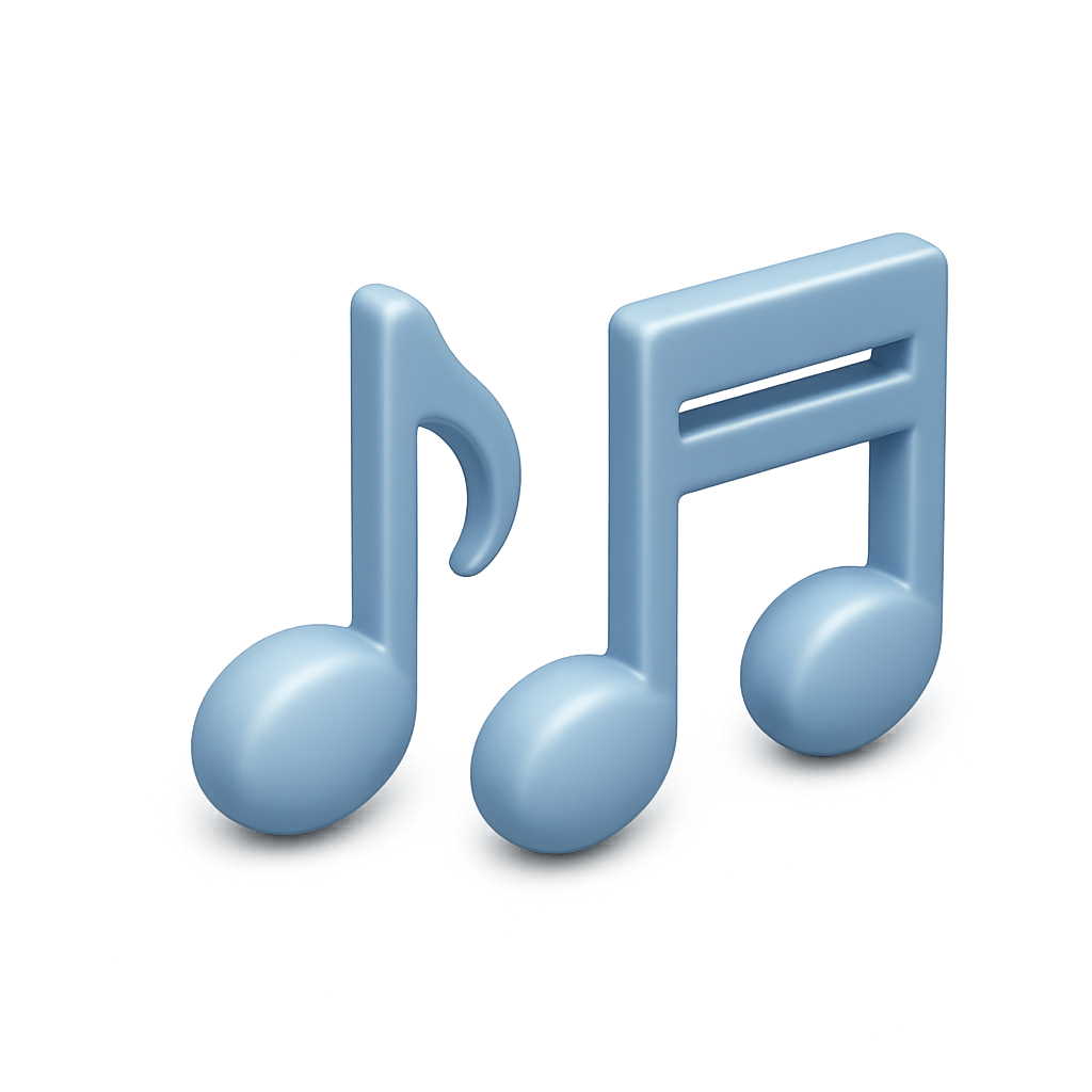 A visually appealing 3D representation of musical notes in a soft blue color. The icon showcases a single note and a double note, both designed with a glossy, volumetric effect.