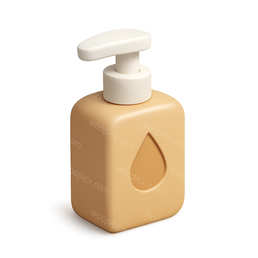 A visually appealing 3D icon of a body lotion pump, featuring a soft beige color, a simplistic design, and a drop-shaped cutout, all set against a transparent background.