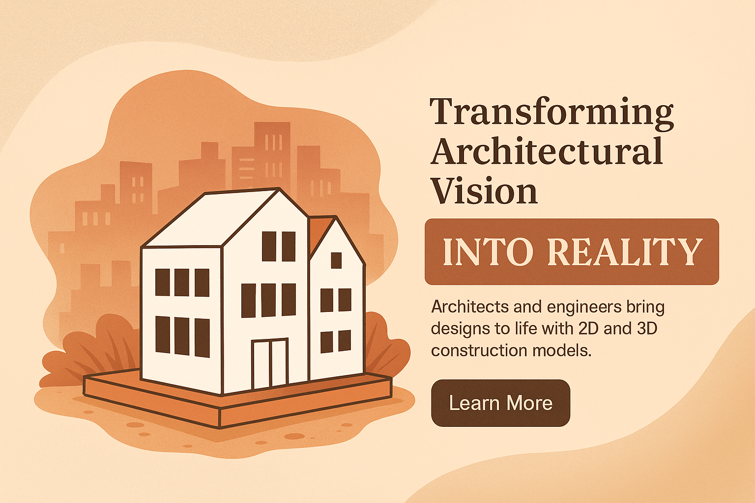 /Collection: /by davooda/Type: PNG/A visually appealing landing page slide in boho style featuring a layered composition. It highlights architectural designs with a warm color palette and engaging text elements.