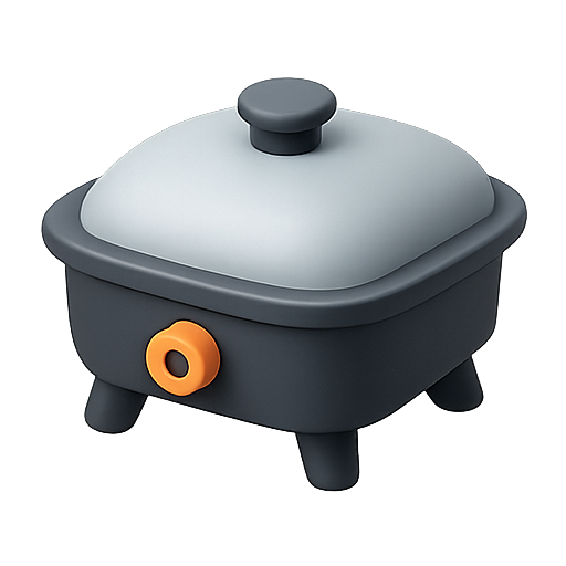 A modern illustration of a square cooking appliance with a sleek design, featuring a light gray lid and a dark base. Ideal for culinary-themed graphics or product showcases.