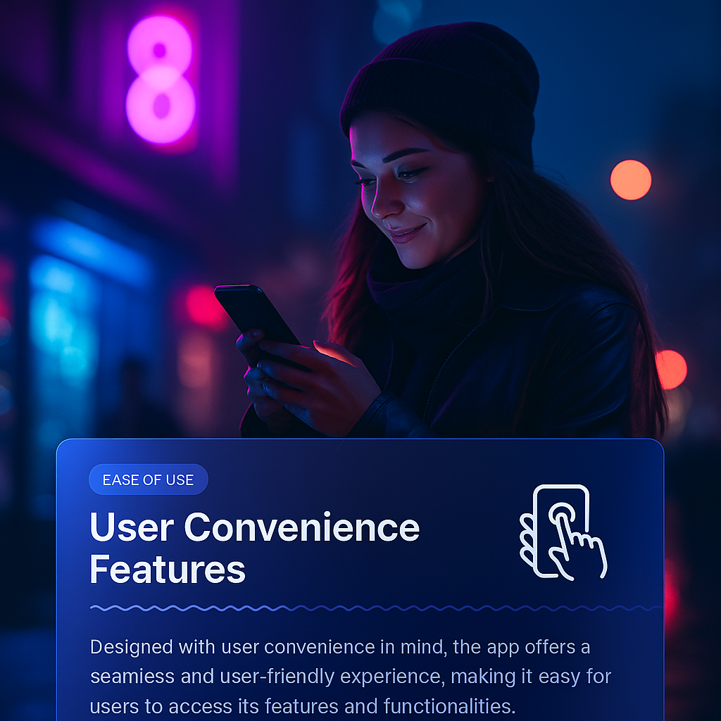 /Collection: /by davooda/Type: PNG/A vibrant night city scene featuring a woman engrossed in her mobile app under neon lights. The atmosphere is lively with a modern urban aesthetic, showcasing technology's role in city life.