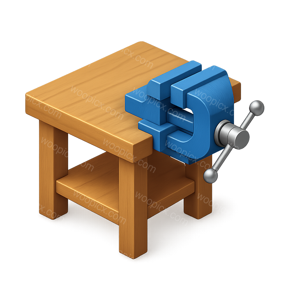 /Collection: /by davooda/Type: PNG/A detailed 3D icon of a wooden workbench featuring a blue vice. The isometric design gives it a volumetric feel, showcasing the workbench from a three-quarter perspective.