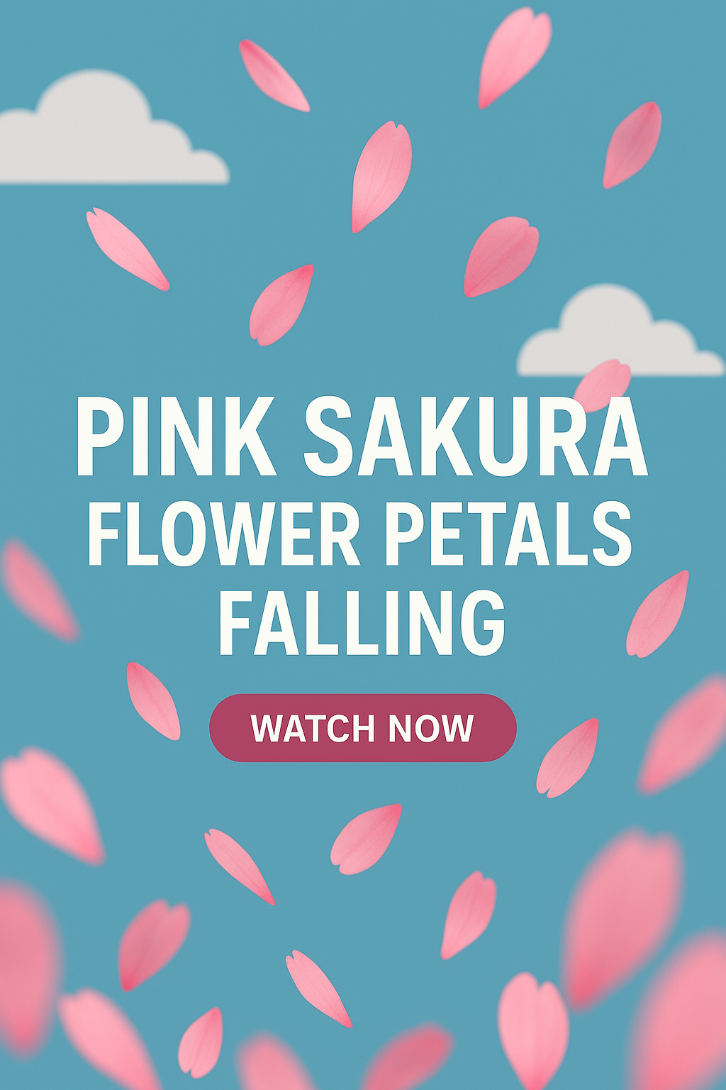 A vibrant digital graphic depicting pink sakura flower petals falling against a blue sky background with clouds, ideal for promoting spring-themed content.