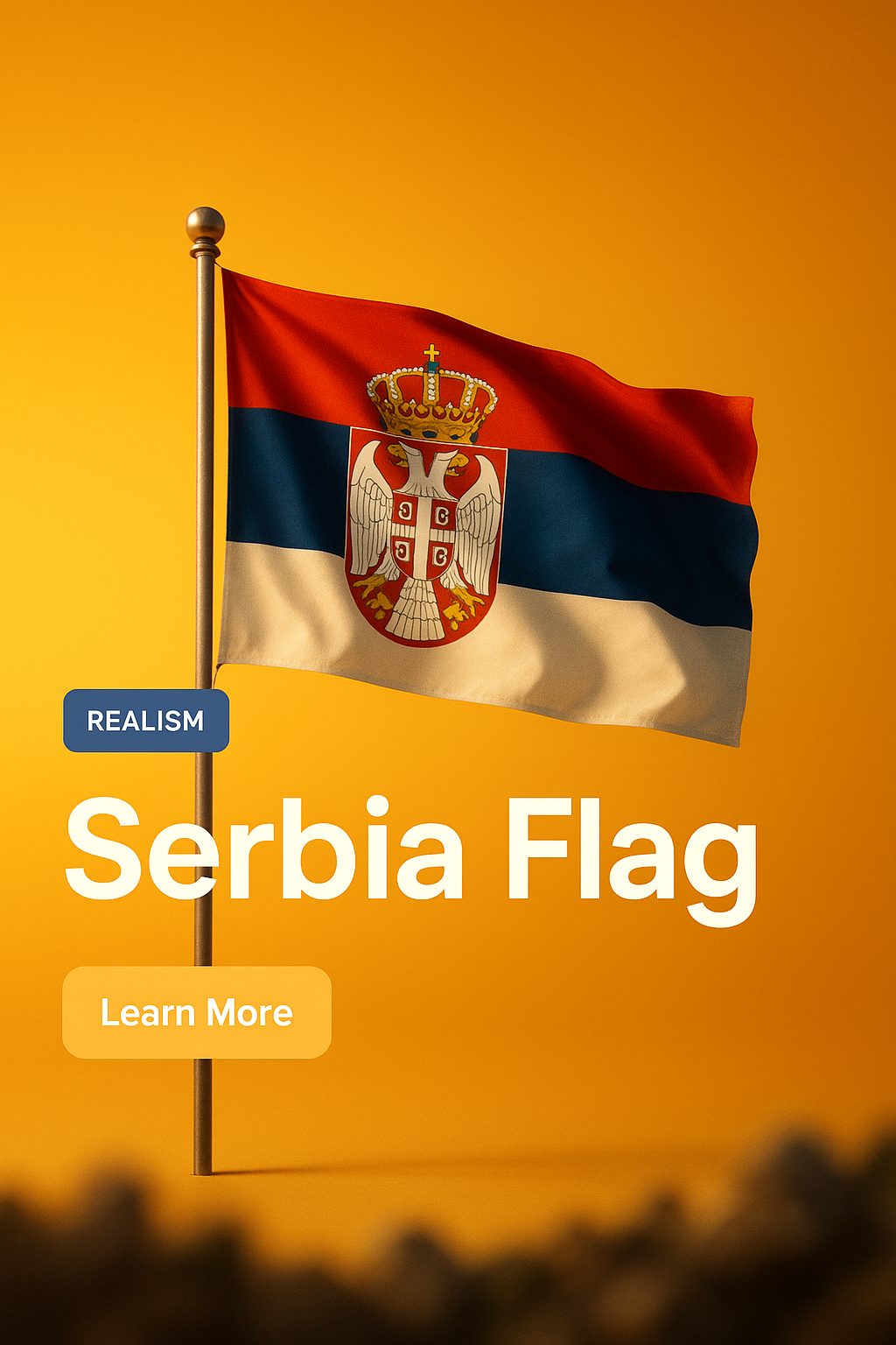 /Collection: /by davooda/Type: PNG/A digital illustration of the Serbia flag fluttering against a warm gradient background, showcasing a realistic style. Ideal for educational or promotional use.