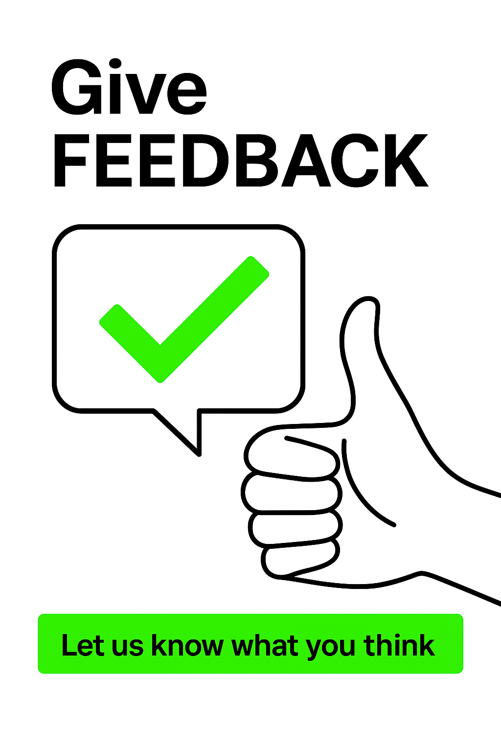Engaging Feedback Request Graphic with Hand and Thumbs Up Symbol