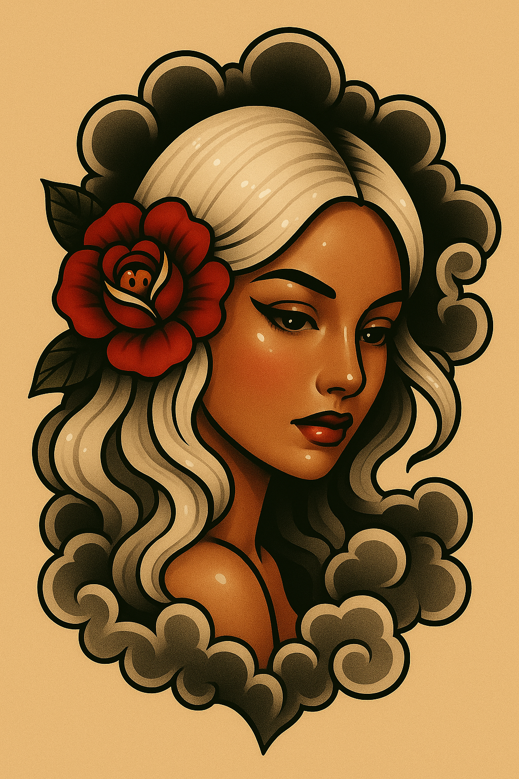 Glossy Pin-Up Portrait in Tattoo Style