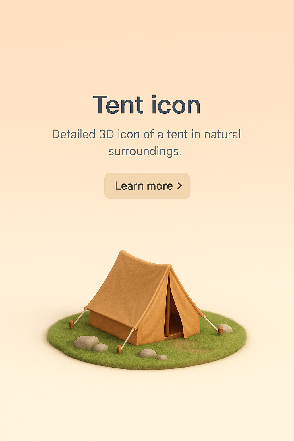 A detailed 3D scene featuring a tent icon set in a natural environment. The background smoothly transitions from gradient to solid, enhancing the realism of the scene.