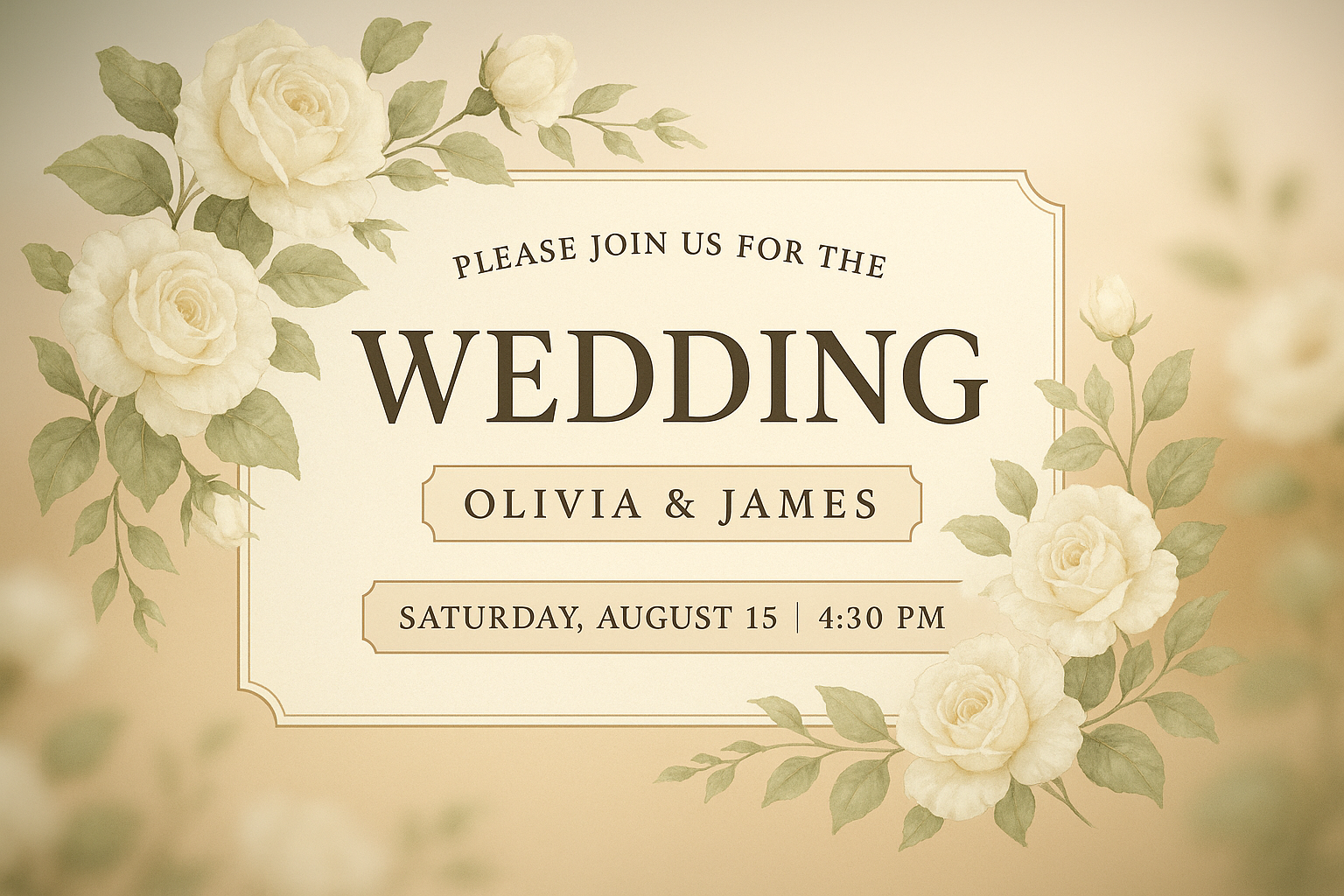 Charming wedding invitation featuring soft floral elements and elegant typography, ideal for formal wedding announcements and invitations.
