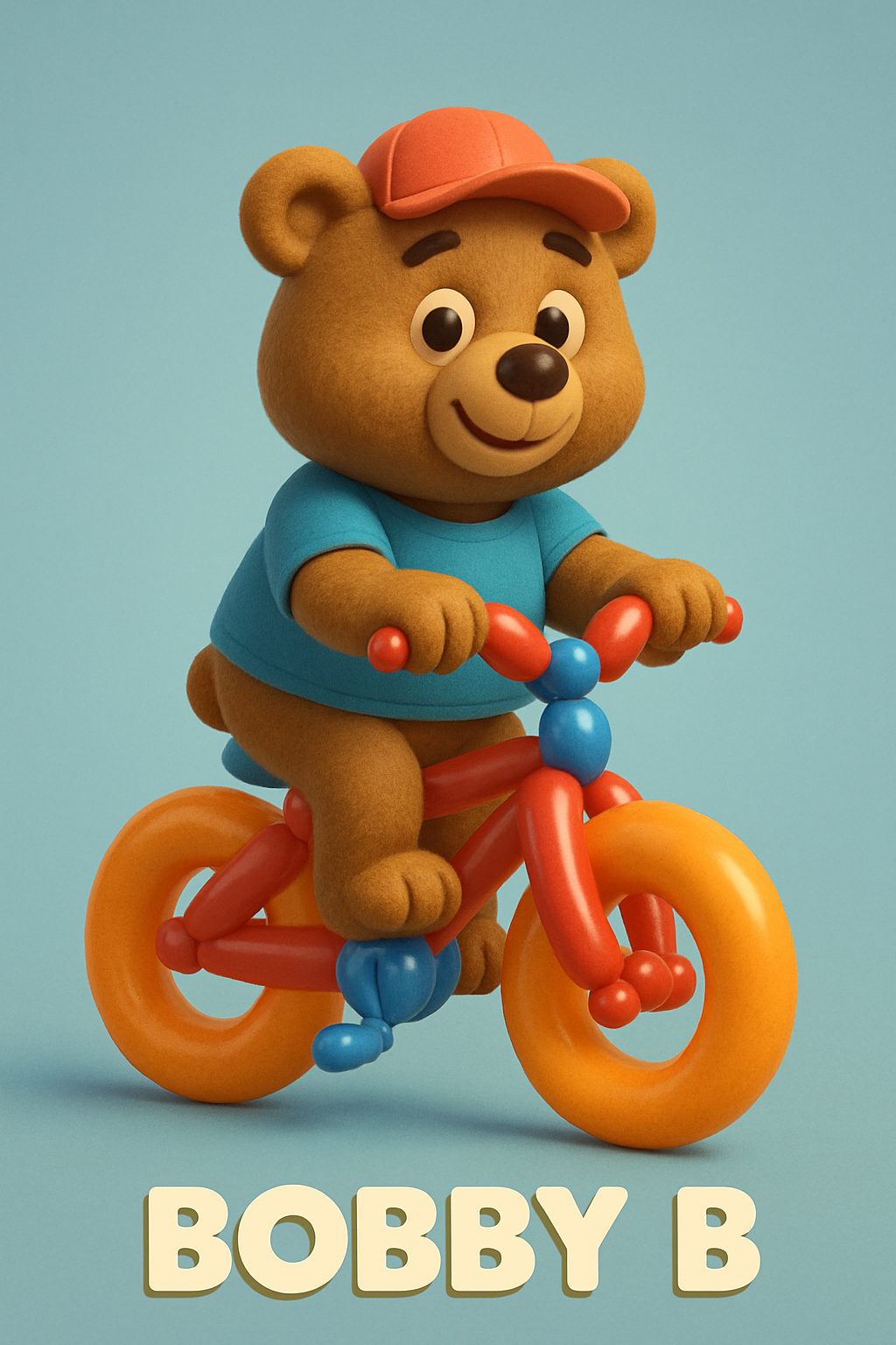 Colorful 3D illustration of a friendly bear character on a bicycle, designed for children's entertainment and branding. Ideal for animated series or merchandise.