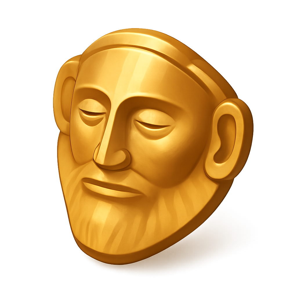 3D Mycenaean Death Mask Icon with Volumetric Feel