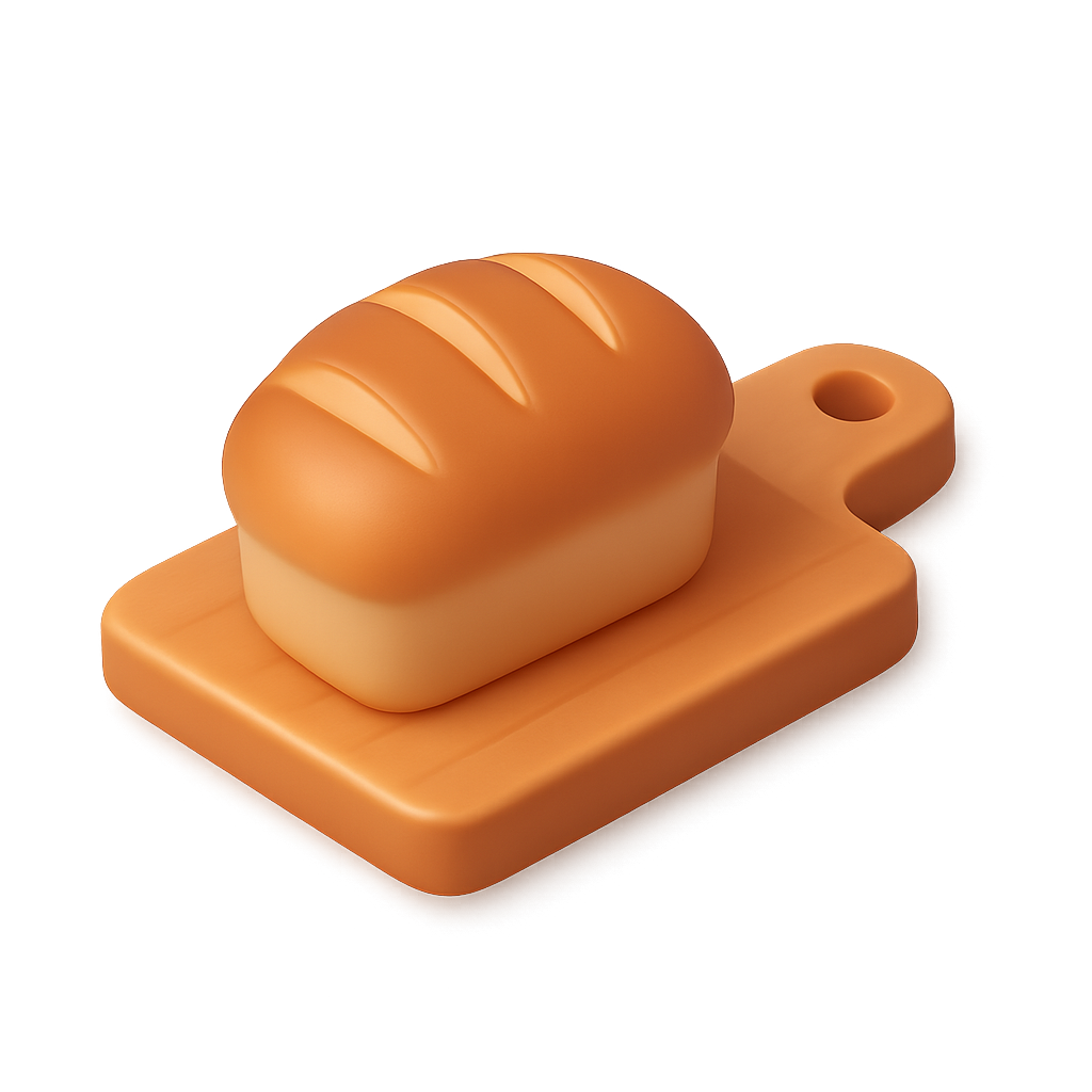3D Breadboard Icon with Loaf of Bread in Isometric View