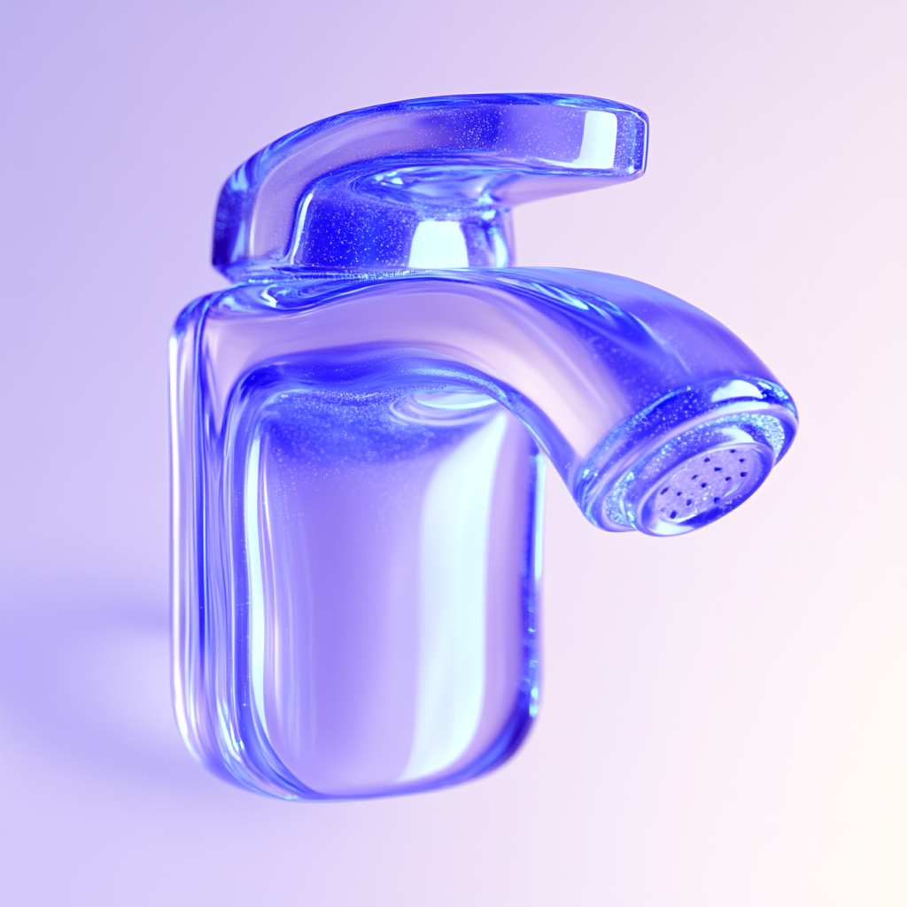 A visually striking 3D render of a blue glass faucet, showcasing a modern and minimalist design. Ideal for use in digital interfaces or product branding.