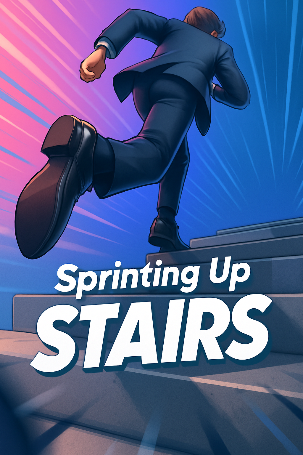 Dynamic Young Businessman Sprinting Up Stairs in Office Scene