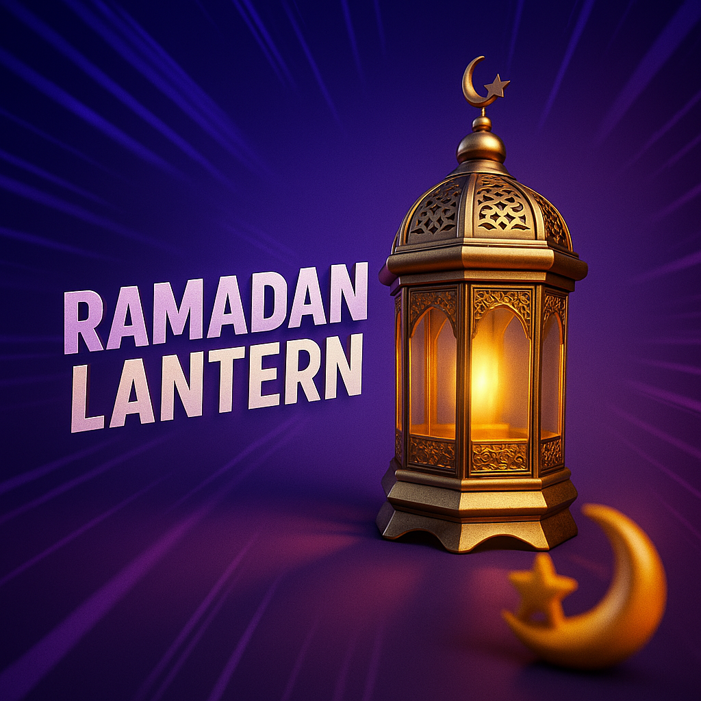 Dynamic 3D Ramadan Lantern Decoration with Vibrant Background