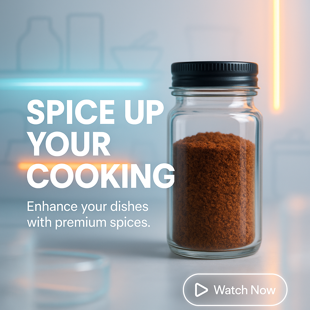 Engaging promotional graphic showcasing a spice jar with a modern background, ideal for culinary marketing and social media advertising.