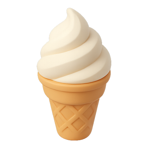 A realistic 3D rendering of a soft serve ice cream cone, showcasing smooth swirls of cream atop a classic waffle cone. Ideal for dessert-themed designs and food-related content.