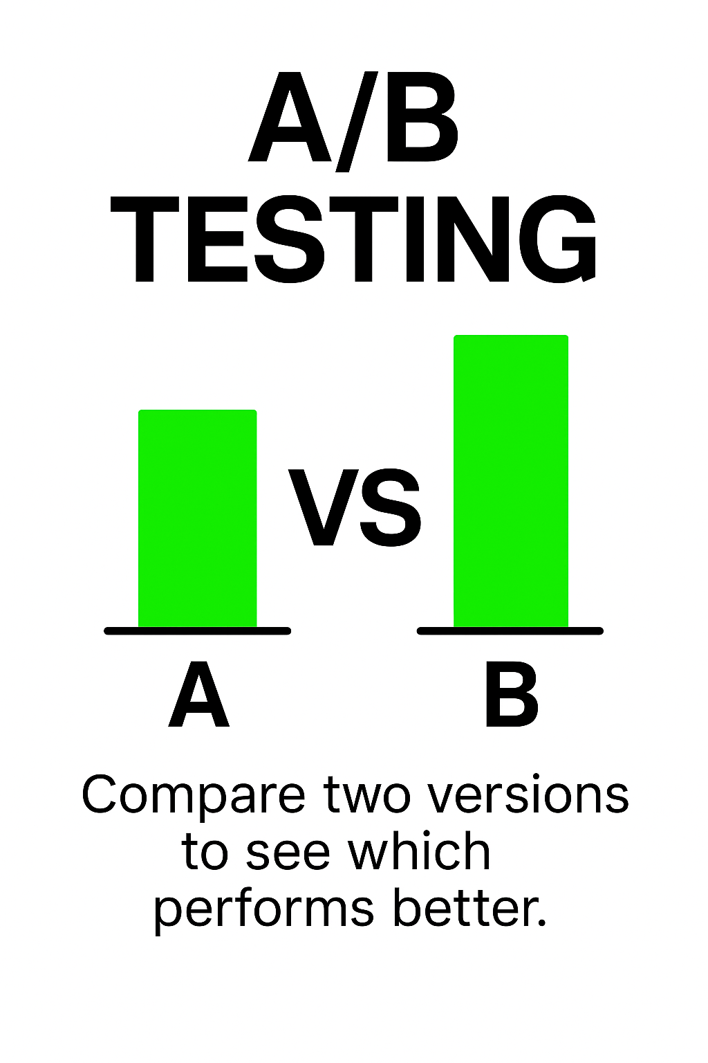 Informative illustration depicting A/B testing concept with side-by-side bar comparisons, designed for educational purposes in marketing and analytics.