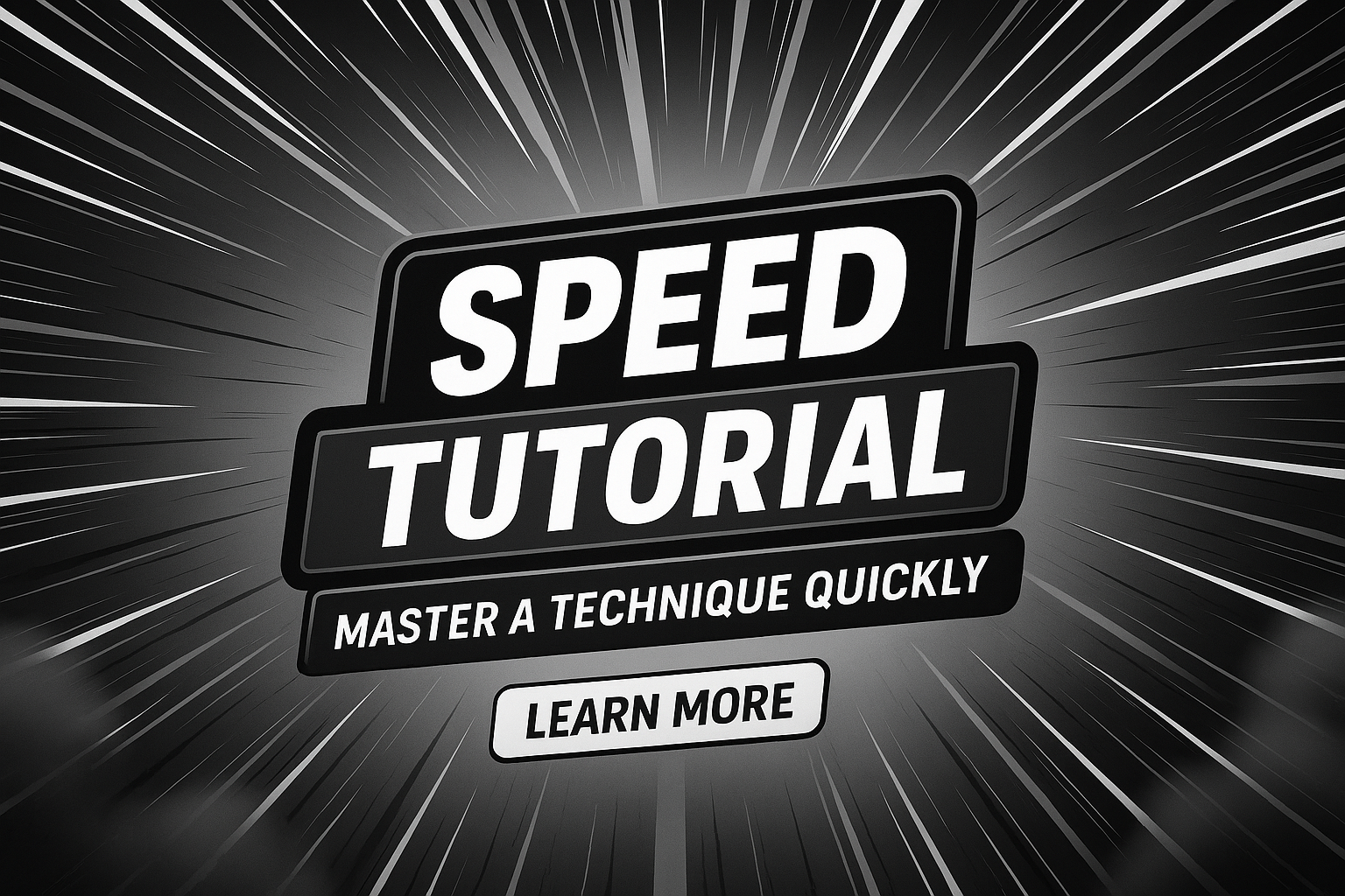 Engaging graphic designed for a speed tutorial promotion, featuring bold typography and a radial burst effect, ideal for online learning platforms.
