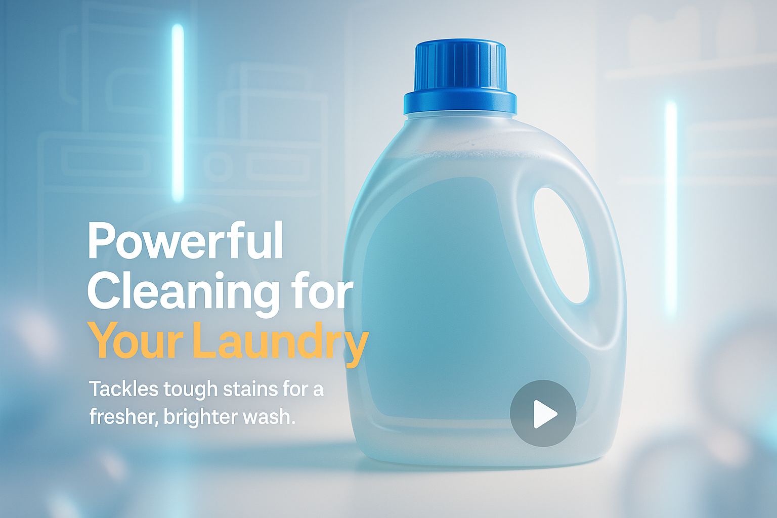 A visually appealing product advertisement for laundry detergent featuring a sleek bottle design, ideal for e-commerce and promotional use in cleaning product marketing.