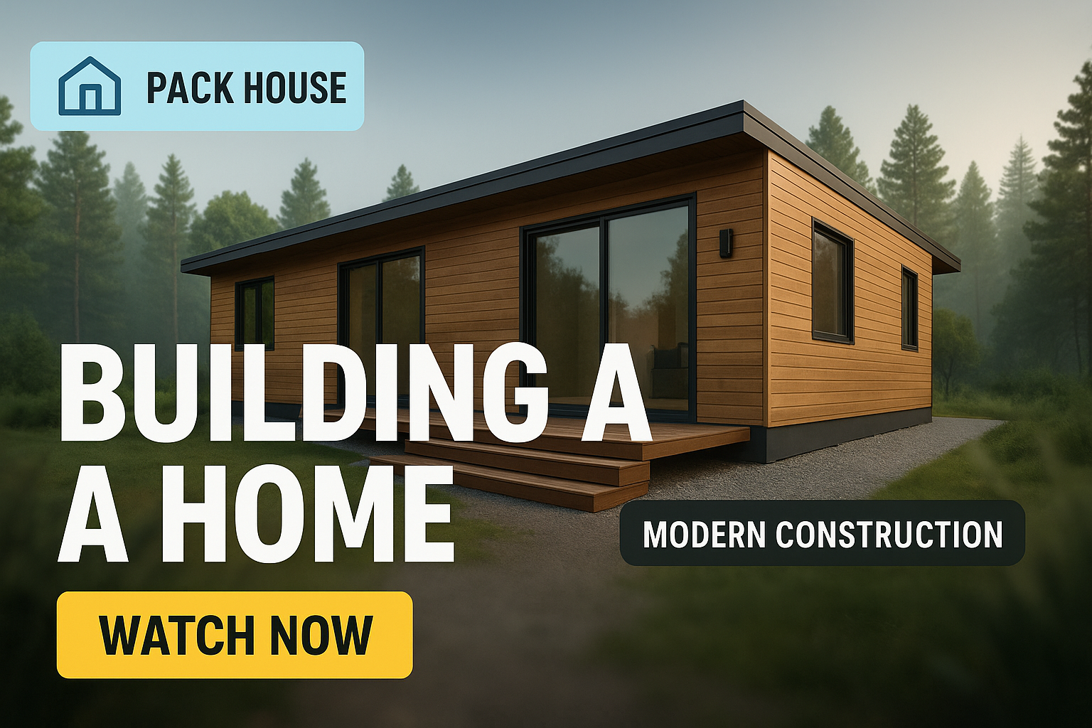 Promotional graphic showcasing a modern home design. The image features clean lines and natural surroundings, ideal for advertisements in real estate or construction sectors.