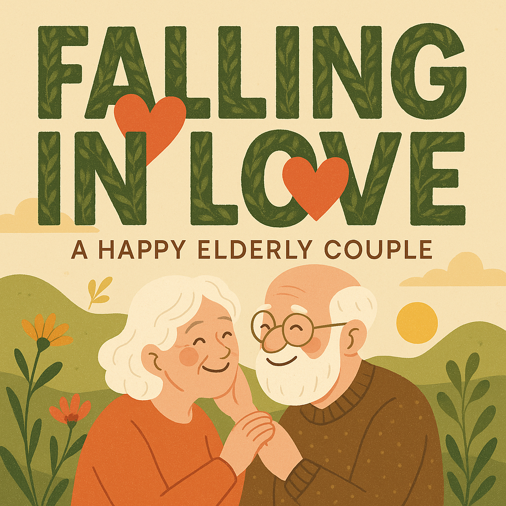 A warm and inviting illustration depicting a happy elderly couple, symbolizing love and companionship, ideal for greeting cards or romantic themes.