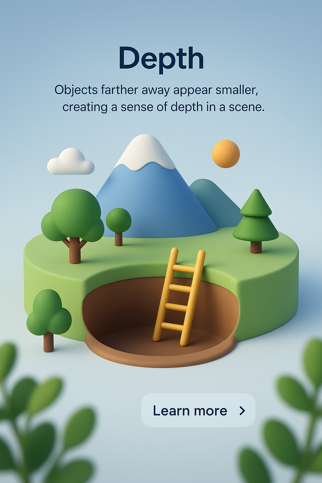 /Collection: /by davooda/Type: PNG/A visually engaging 3D illustration featuring a mountainous landscape with trees, a sun, and a ladder leading into a hole. The scene uses a smooth gradient background to enhance depth perception.