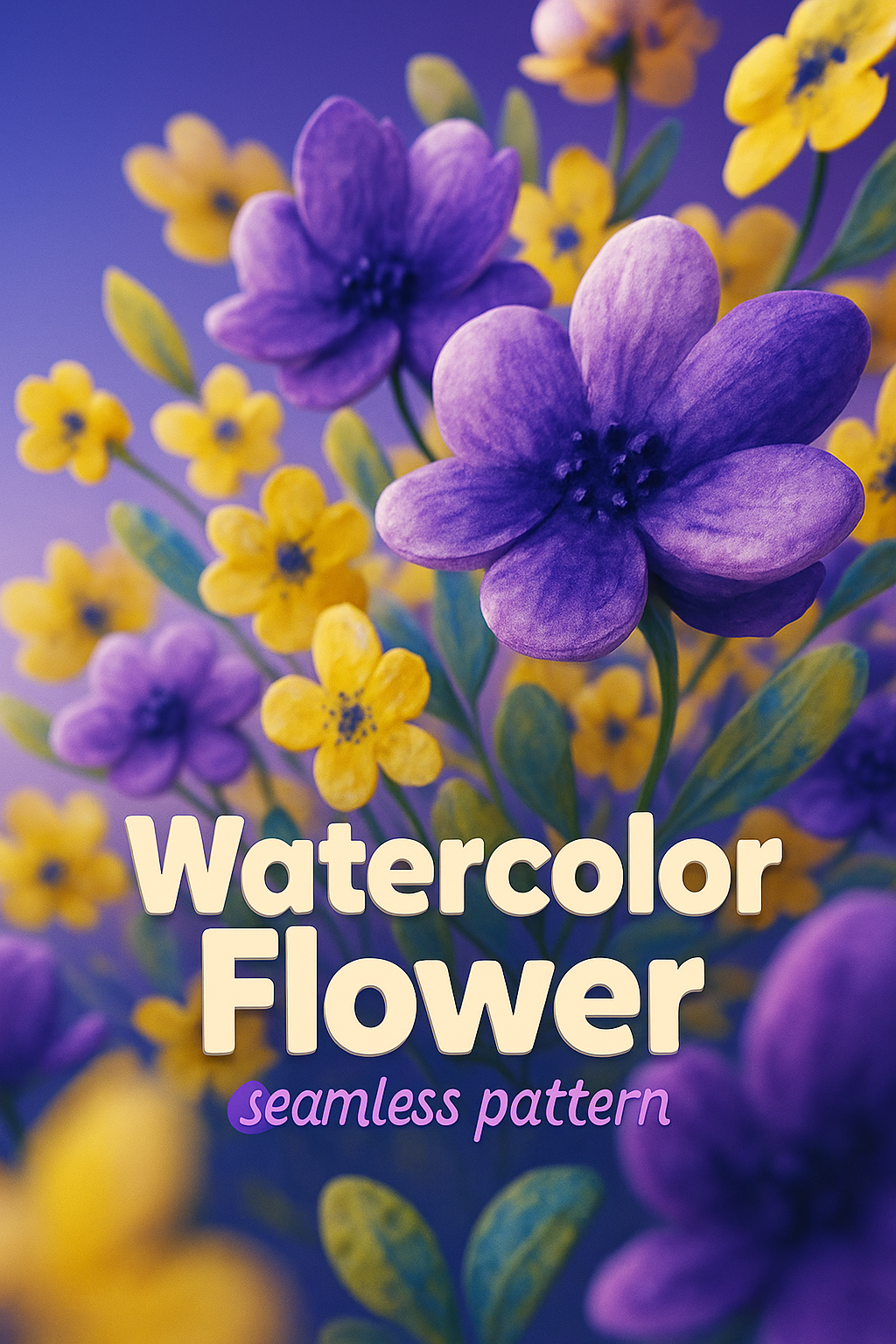 Vibrant Yellow and Purple Floral Watercolor Pattern Design