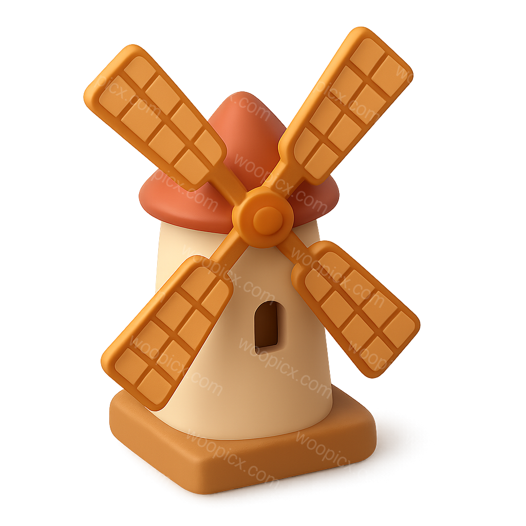 Stylized Isometric Windmill Icon Design in 3D View