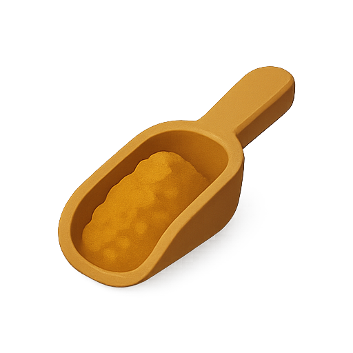 A detailed 3D rendering of a measuring scoop, showcasing a smooth design and vibrant colors, ideal for product displays or kitchenware marketing.