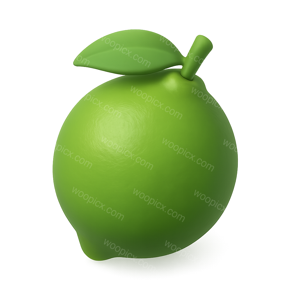 Stylized 3D Lime Icon with Leaf on Transparent Background