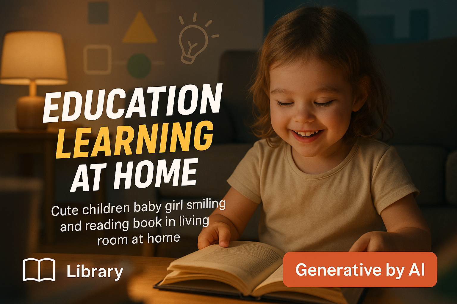 Engaging image of a smiling child reading a book in a cozy living room, ideal for promoting educational content or children's learning materials.