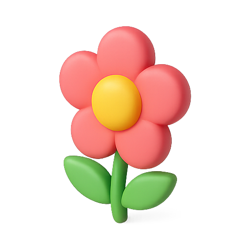 Playful 3D flower icon featuring vibrant colors and a simplistic design, ideal for use in children's products, educational materials, or playful branding.