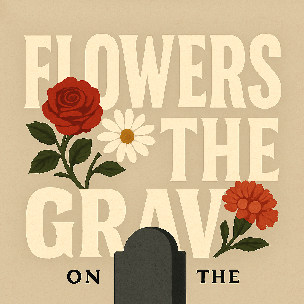 /Collection: /by davooda/Type: PNG/Stylized graphic artwork showcasing floral elements alongside bold typography, perfect for memorial or tribute-themed projects. The design combines simplicity with impactful visuals.