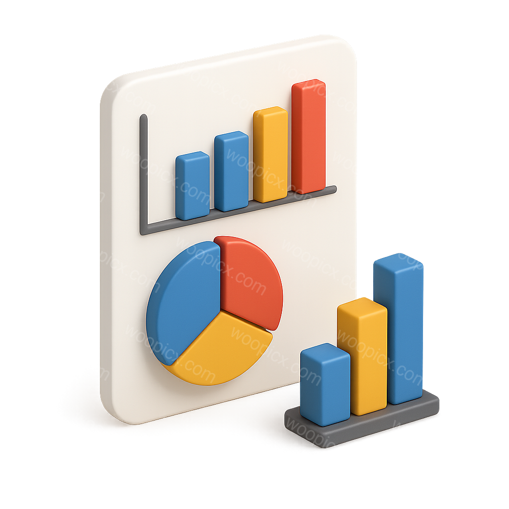 /Premium/Collection: /by davooda/Type: PNG/A visually striking 3D icon representing data analytics, featuring colorful bar graphs and a pie chart. Designed in an isometric view with a transparent background, it highlights the volumetric aspects of data visualization.