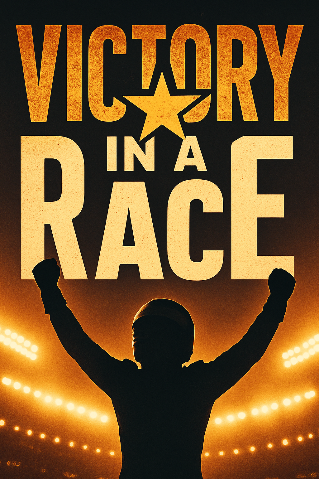 /Collection: /by davooda/Type: PNG/A striking sports-themed poster showcasing a victorious silhouette against a vibrant background, ideal for promoting racing events or motivational content.