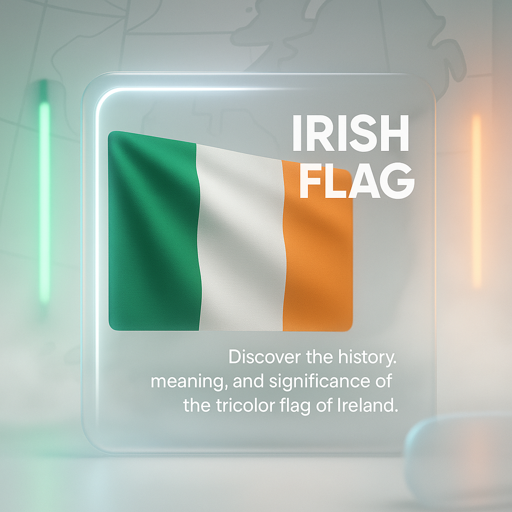 /Collection: /by davooda/Type: PNG/A modern 3D graphic featuring the Irish flag, accompanied by informative text about its history and significance, suitable for educational content or cultural exploration.