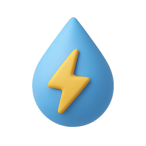 Stylized 3D icon featuring a blue water drop with a yellow lightning bolt, ideal for technology or energy-related themes, emphasizing creativity and modern design.