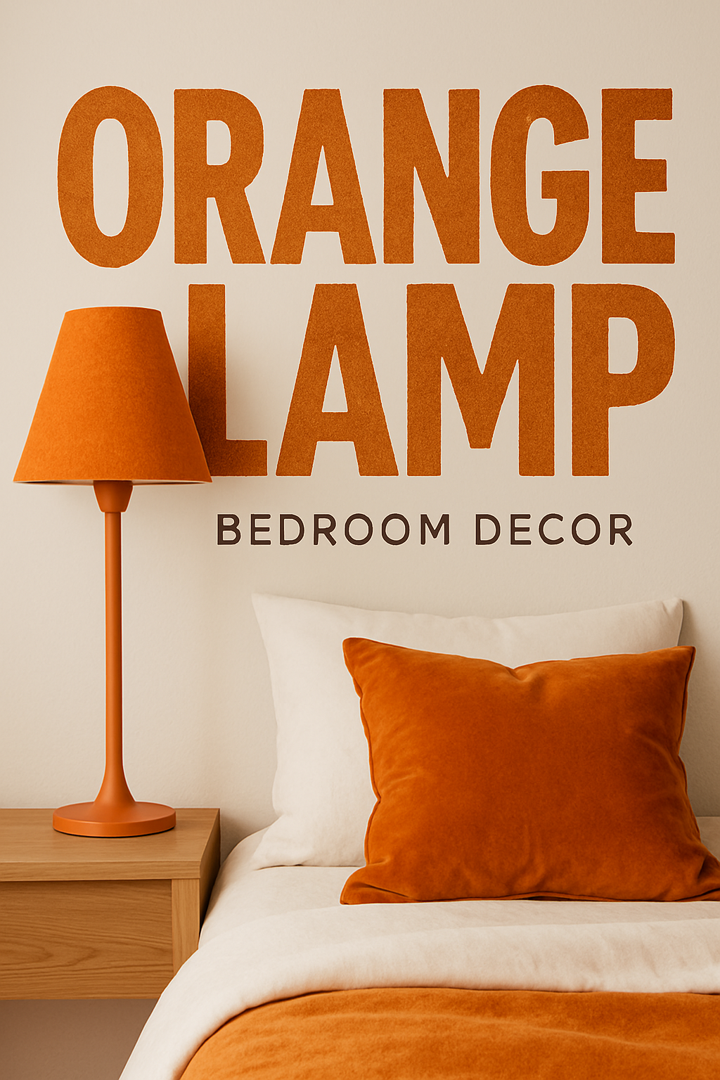 Stylish Bedroom Decor Featuring Orange Lamp and Text Overlay
