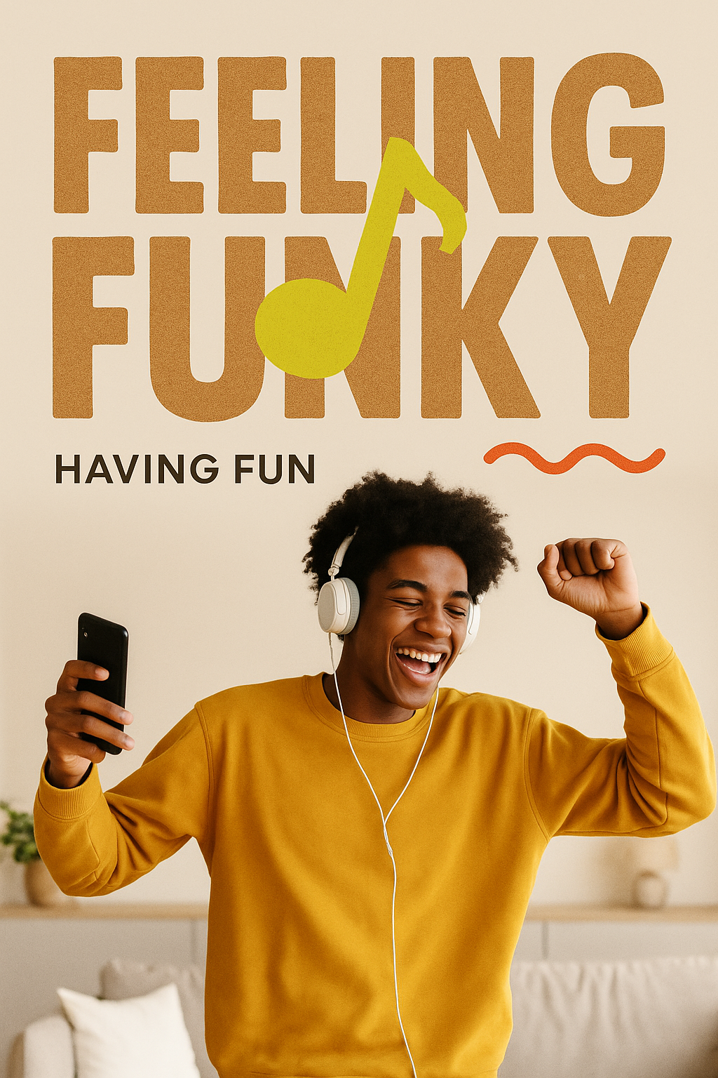 /Collection: /by davooda/Type: PNG/Colorful social media post showcasing a young person enjoying music, designed to convey fun and positive emotions, perfect for lifestyle or music-related content.
