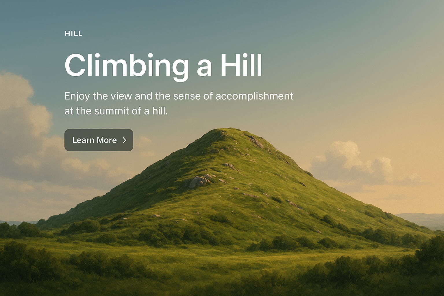 /Collection: /by davooda/Type: PNG/A stylish web page layout showcasing a hill climbing theme, featuring a gradient background, a prominent title, and a brief text block with a call-to-action button.