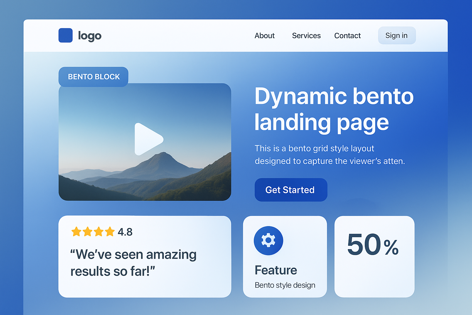 Dynamic Bento Landing Page Design with Engaging Visuals