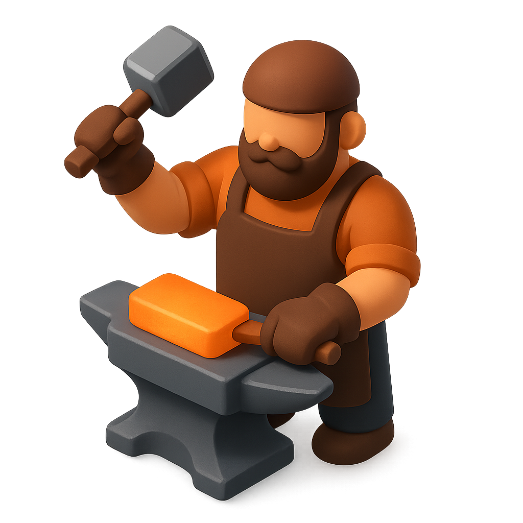 Stylized 3D Blacksmith Icon with Hammer and Anvil