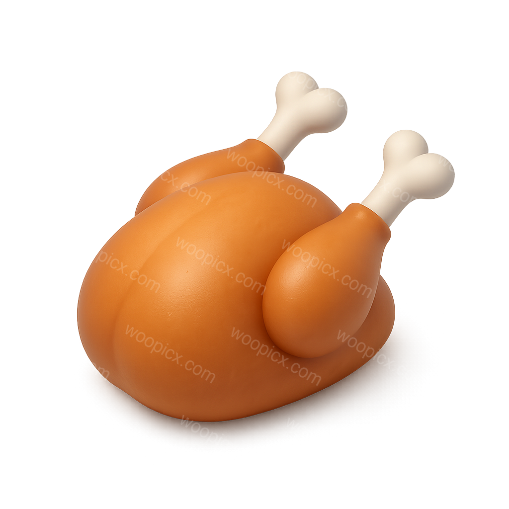 /Premium/Collection: /by davooda/Type: PNG/A stylized 3D icon of a cooked chicken with drumsticks, featuring a smooth, rounded shape and a glossy finish, presented in a three-quarter view against a soft background.