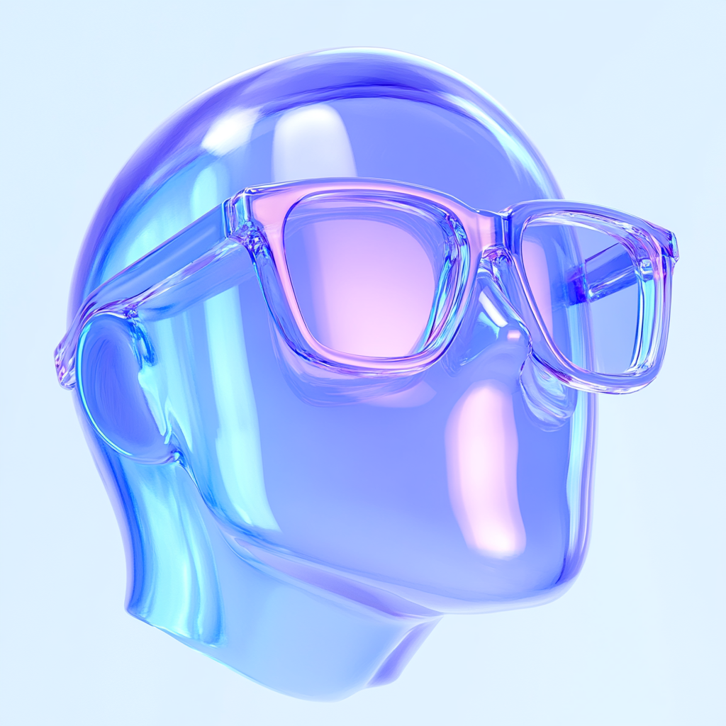 /Collection: /by davooda/Type: PNG/A striking 3D rendering of stylish glasses displayed on a futuristic, translucent mannequin head. The design features vibrant colors and a sleek, modern aesthetic, ideal for eyewear marketing.
