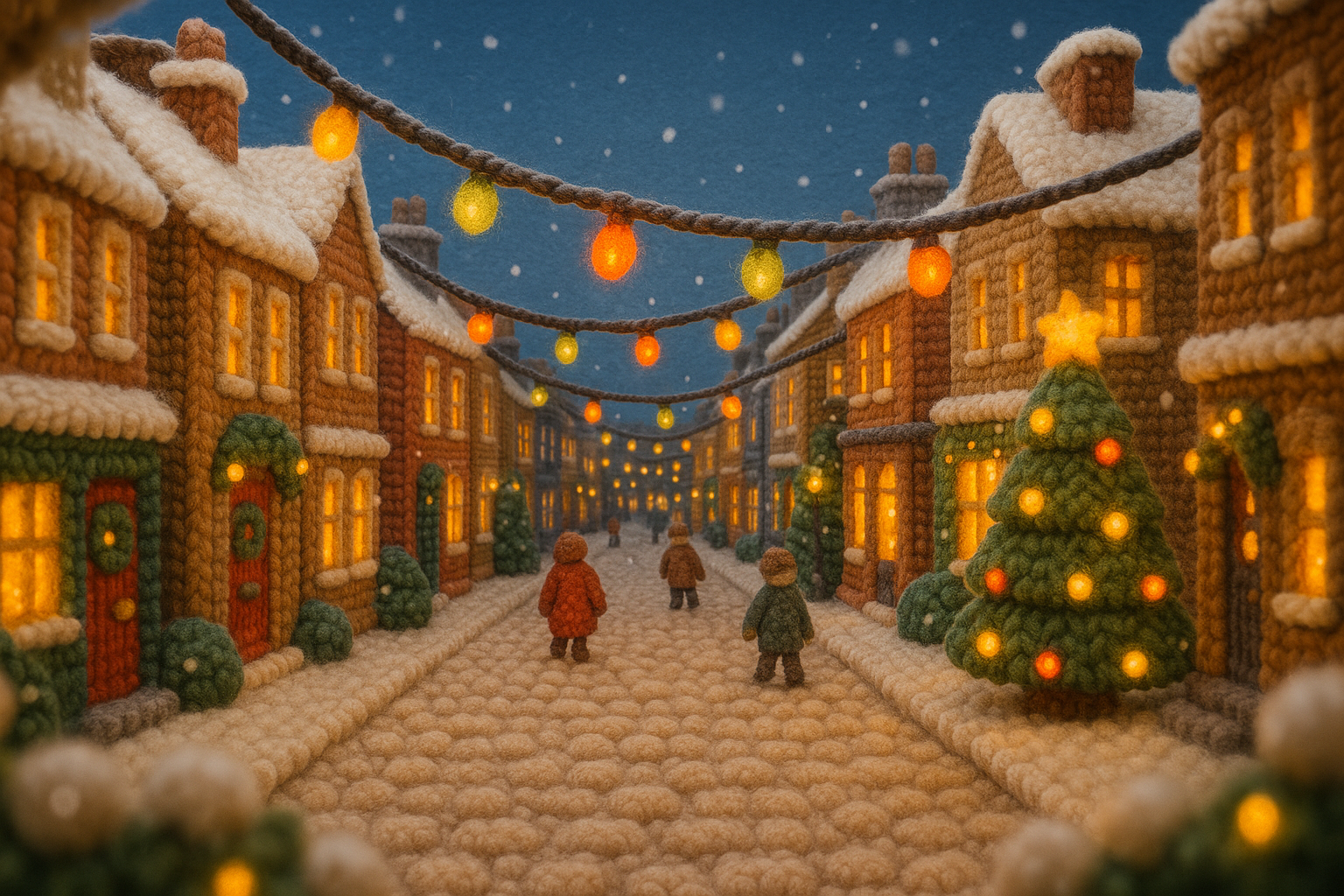 Charming Winter Village Scene with Knitted Aesthetic
