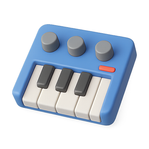 A playful representation of a miniature keyboard toy featuring vibrant colors and a simple design, perfect for children's play or music-themed decor.