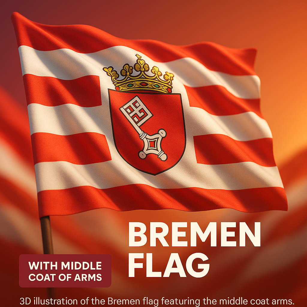 /Collection: /by davooda/Type: PNG/A detailed 3D rendering of the Bremen flag, prominently displaying its coat of arms. The design features vibrant colors and realistic textures, ideal for educational or promotional use related to Bremen.