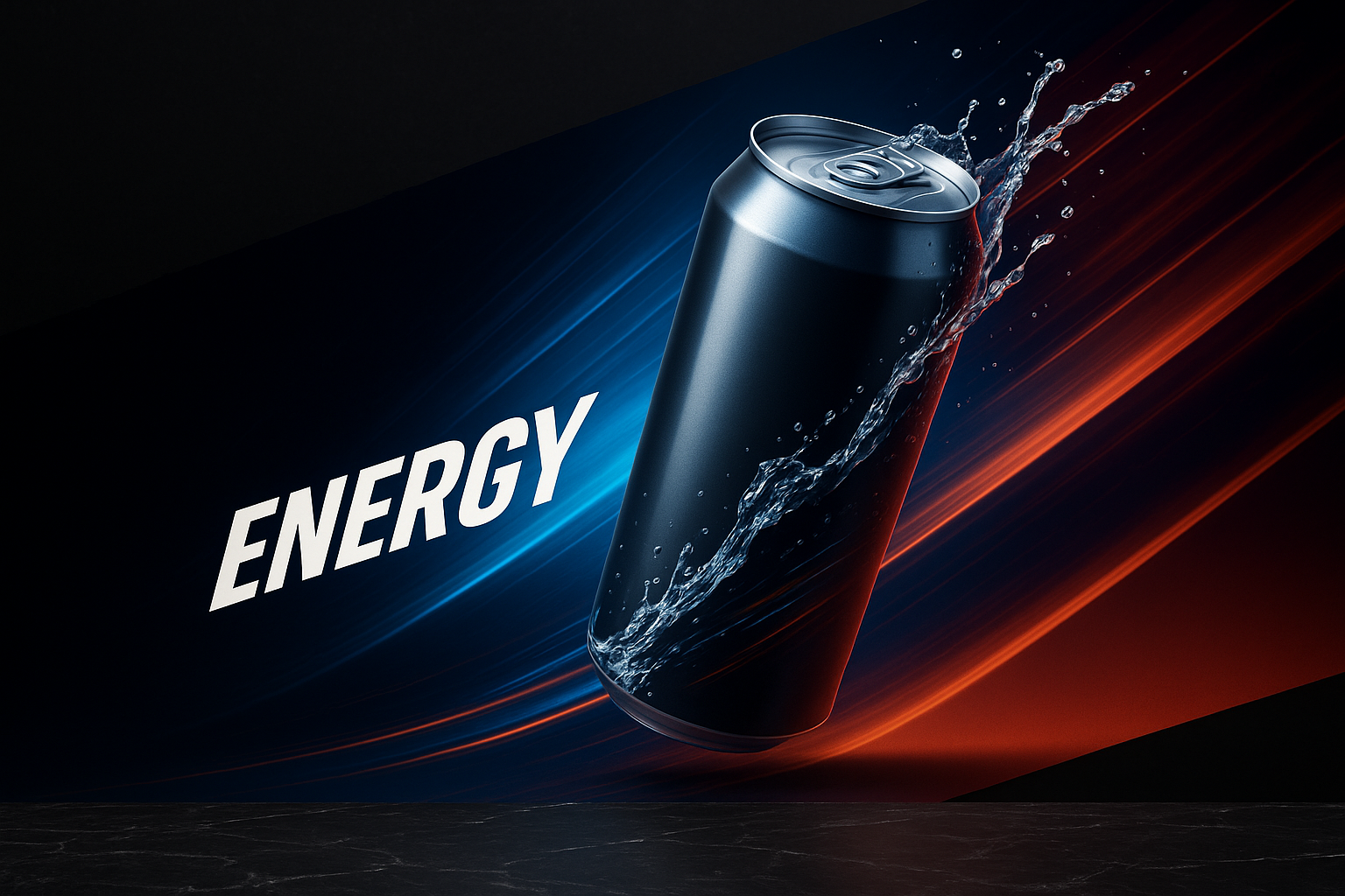 Dynamic Elegance: Captivating Energy Drink Can Visual