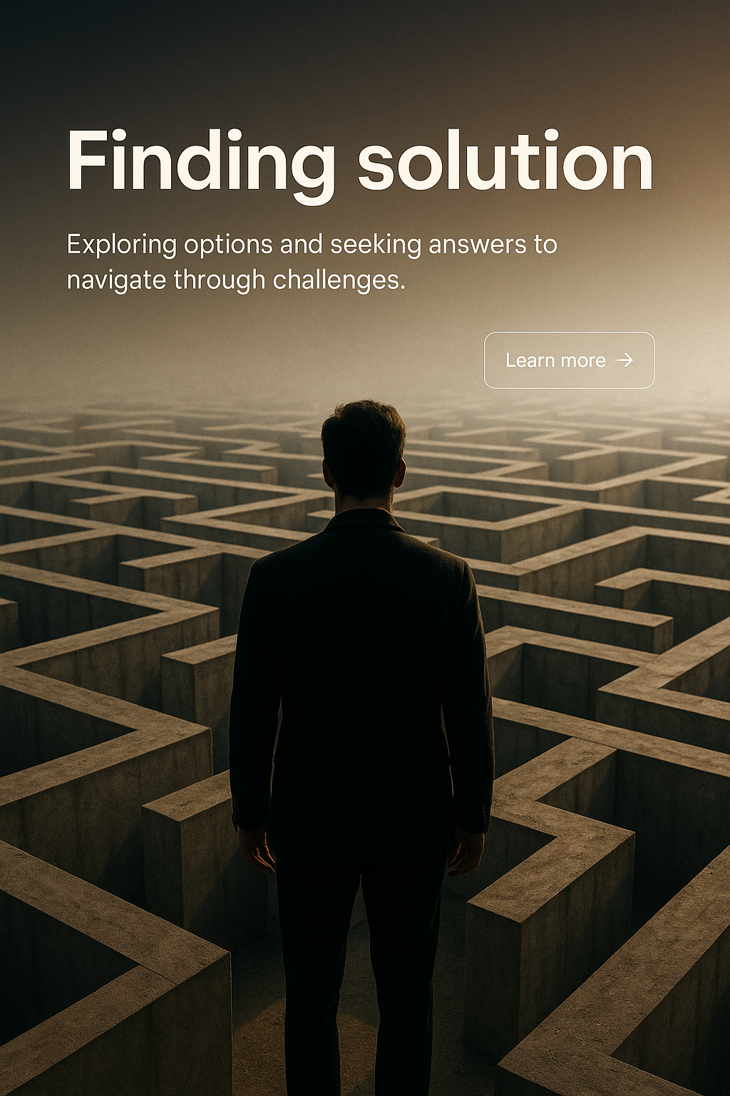 /Collection: /by davooda/Type: PNG/A silhouette of a man stands at the edge of a complex maze, symbolizing the journey of finding solutions and self-discovery. The background features a gradient from dark to light, enhancing the theme of exploration.