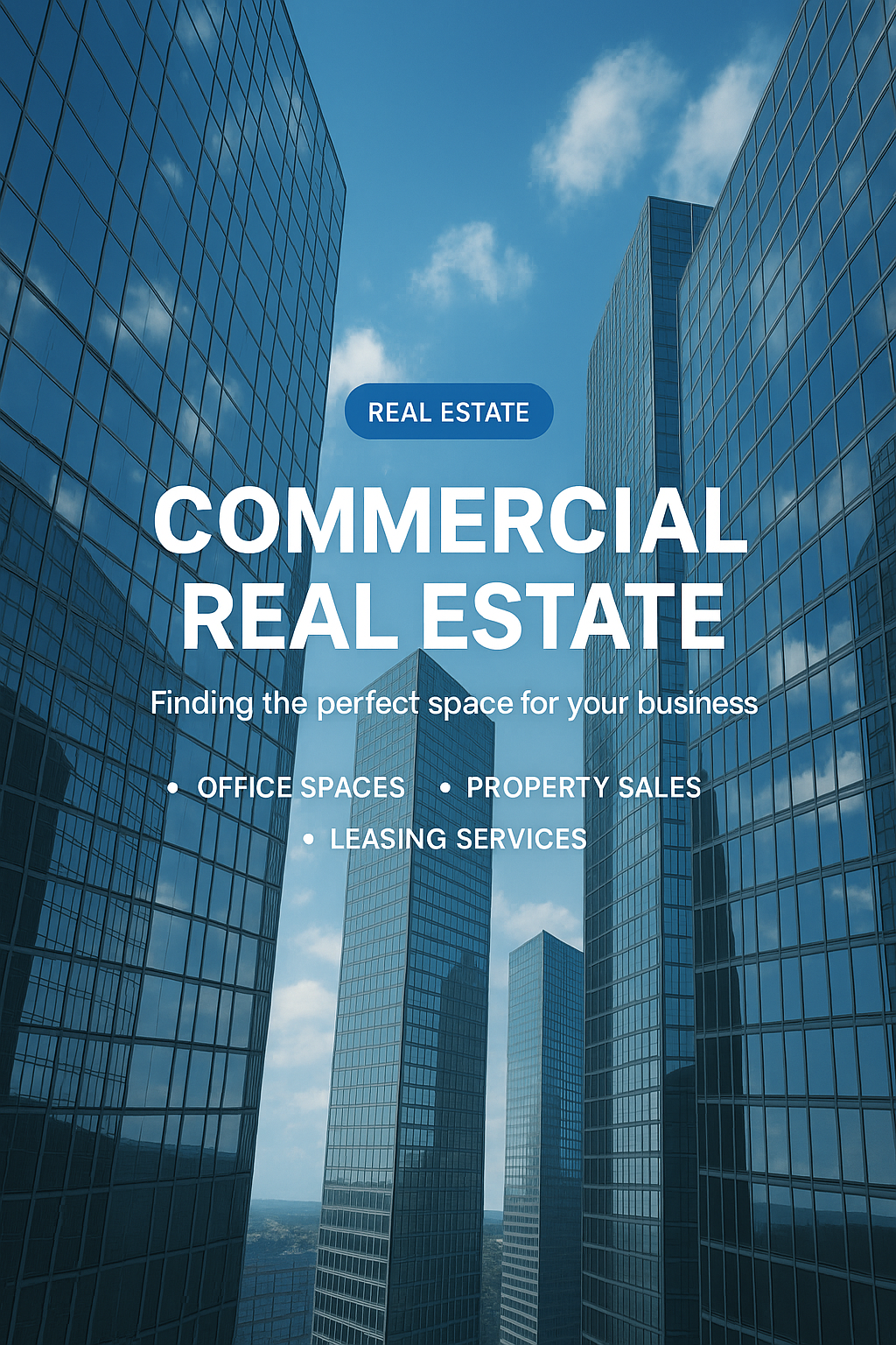 Commercial Real Estate Promotional Graphic with Modern Architecture